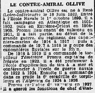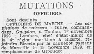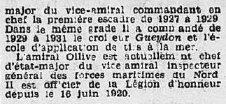 le 23 juillet 1927. Sur le "PROVENCE", Chef d'Etat-major auprès de