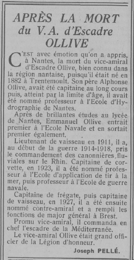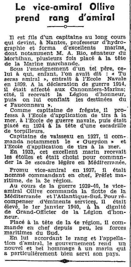 En 1938, Commandant en chef l'Escadre de Méditerranée.