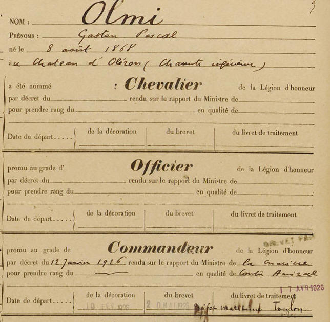 d'Honneur le 12 janvier 1926, étant sur le cuirassé "PARIS",