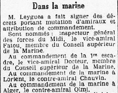 sur le cuirassé "AMIRAL-DUPERRÉ", Escadre du Nord (Cdt Frédéric