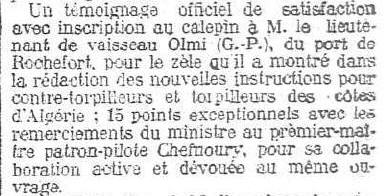 port ROCHEFORT; inscrit au tableau d'avancement.