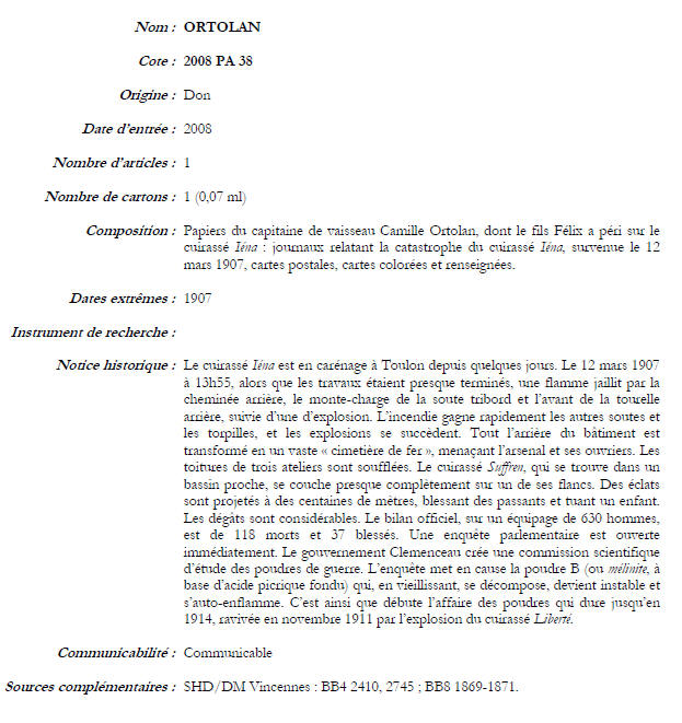 CV (er) Pierre André Camille ORTOLAN (Rochefort 1847-Marseille