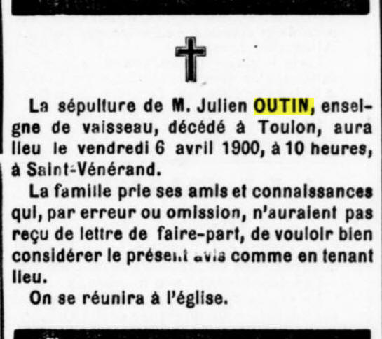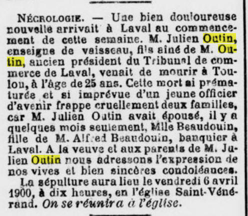 Inhumé le 6 avril 1900 à LAVAL, Saint-Vénérand.