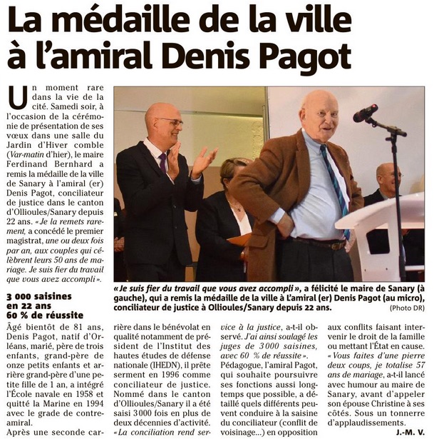 15 janvier 2019 / Reçoit la médaille de la ville de Sanary