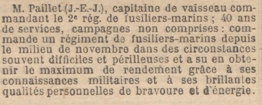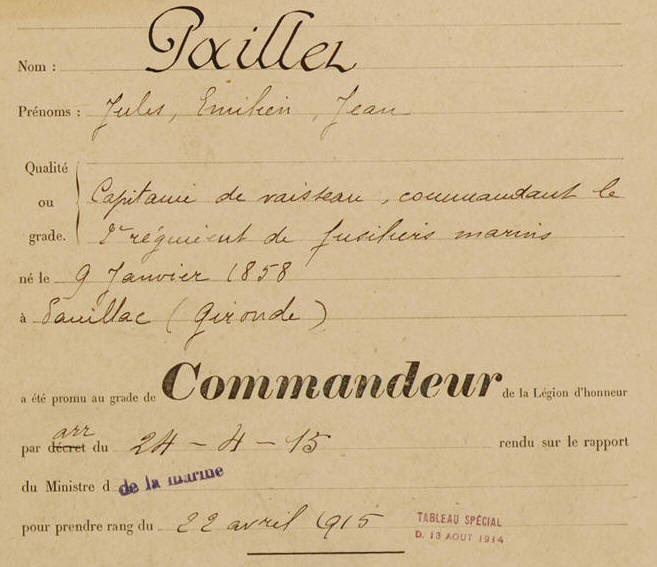 citation suivante au Tableau spécial de la Légion d’honneur avec le