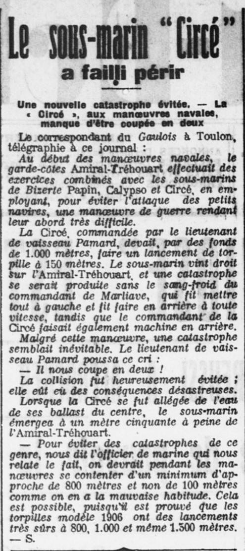 1909, Commandant le sous-marin "CIRCÉ", 1ère Flottille de