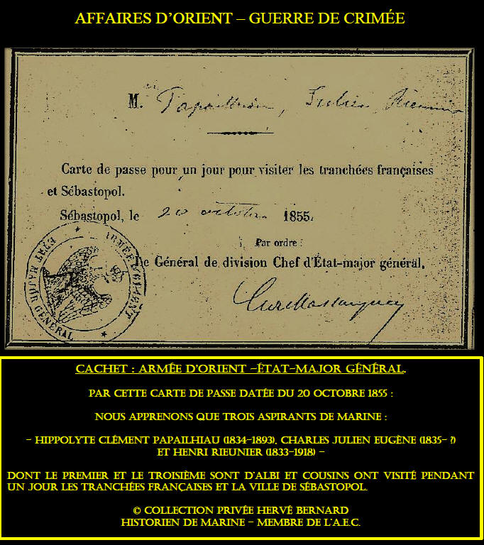 1854, de 1ère classe le 1er avril 1856; port TOULON.