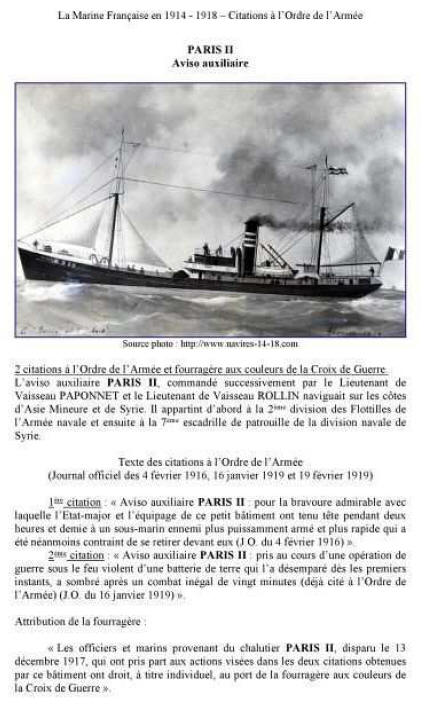 l'Armée de l'aviso auxiliaire "PARIS II"