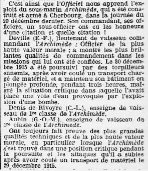 Le 17 décembre 1915, cet Officier commandant le patrouilleur