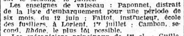 Promu Enseigne de vaisseau le 3 octobre 1900; port ROCHEFORT.
