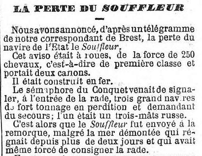 Le Souffleur qui a quitté Brest le 15 novembre à 9 heures et ½ pour