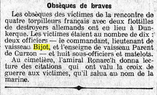 sur le contre-torpilleur "BOUCLIER", il est tué sur la passerelle