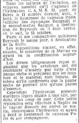 raids à bord d’hydravions prototypes de la maison CAMS. De Berre à