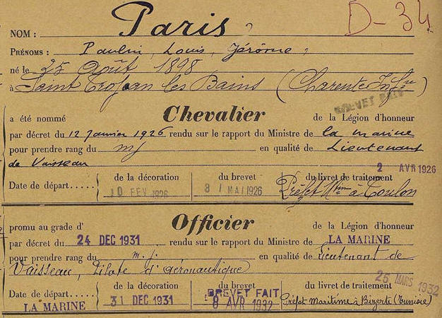 d'Honneur le 12 janvier 1926, en service au C.A.M. de CUERS-PIERREFEU