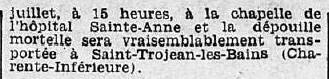 Né le 25 août 1898 à SAINT TROJAN (Charente