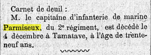 Au 1er janvier 1886, Capitaine-major au 2ème RIMA à MADAGASCAR.