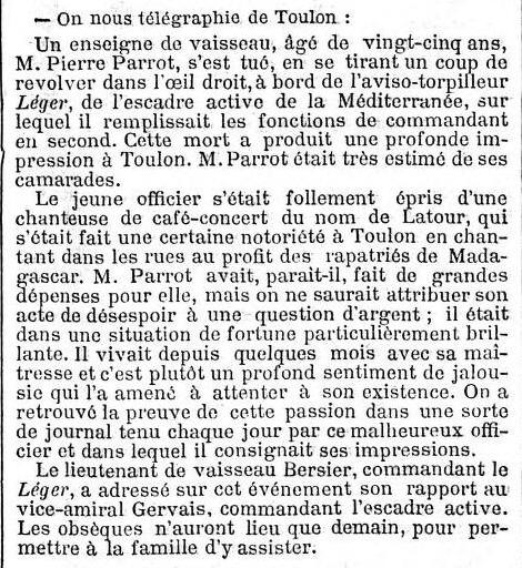 son décès, sur l'aviso torpilleur "LEGER", commandant en second