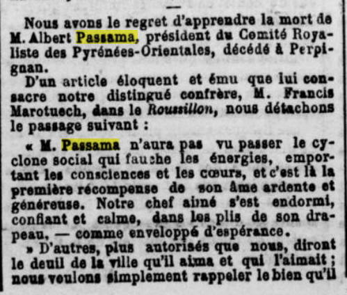 PERPIGNAN (Pyrénées-Orientales) - Décédé le 21 mai 1906 à PERPIGNAN