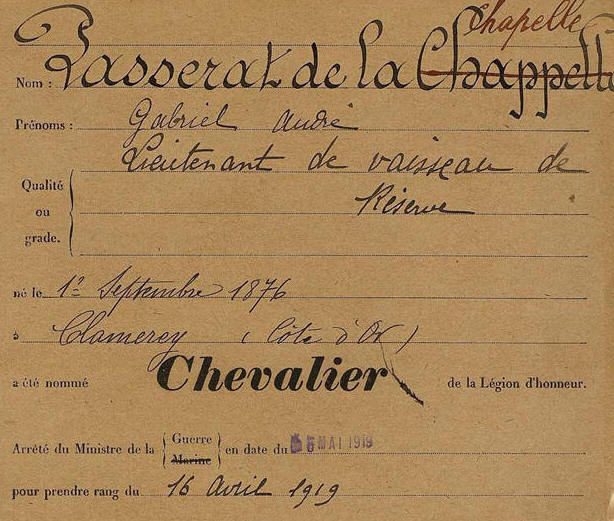 d'Honneur le 16 avril 1919. Idem au 1er janvier 1921.