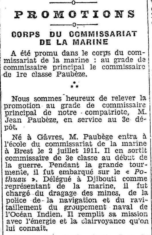 Extrait Le Nouvelliste du Morbihan / 6 septembre 1930