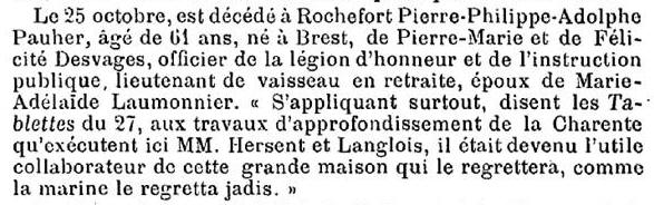 Décédé le 25 octobre 1885 à ROCHEFORT (Charente Maritime)
