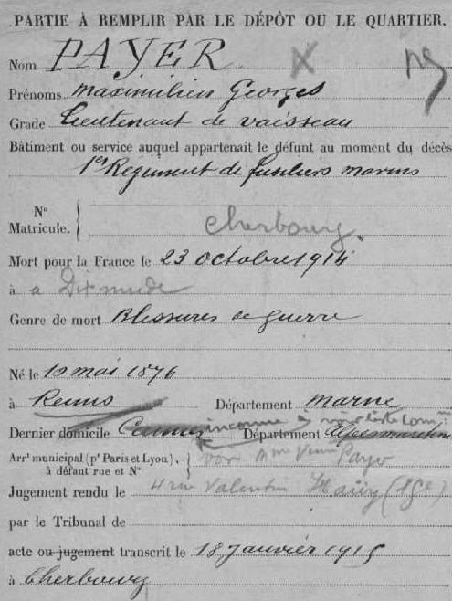sera tué le 23 octobre 1914, par un obus au combat de DIXMUDE,