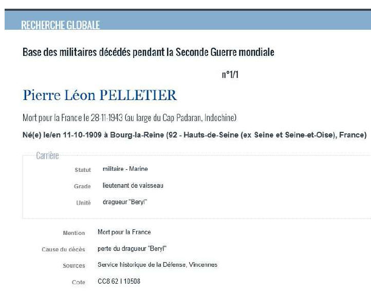 BOURG-la-REINE (Hauts-de-Seine) - Disparu en mer le 27 novembre 1943