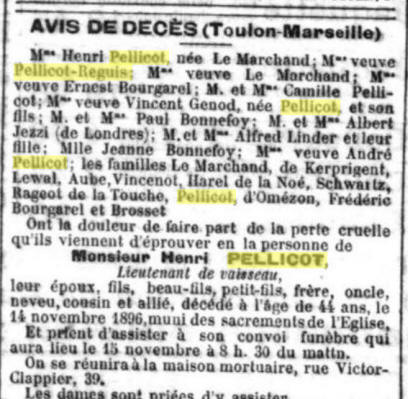 TOULON (Var) - Décédé le 13 novembre 1896 à TOULON (Var).