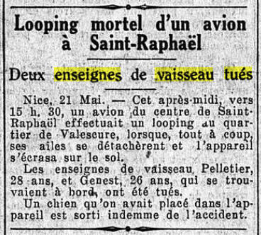 trouvé la mort dans un accident d'aviation le 21 mai 1929. A été