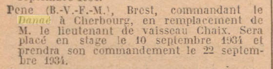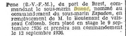 juin 1935, Commandant le sous-marin "DANAE" à CHERBOURG.