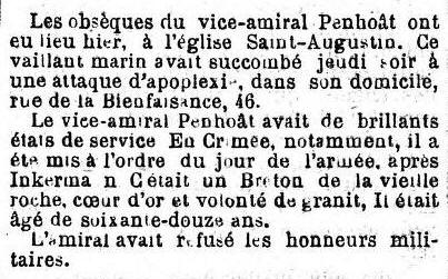 ROSCOFF (Finistère) - Décédé le 14 juin 1882 à PARIS VIIIe (Seine)