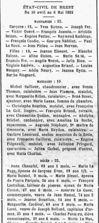 Né le 28 octobre 1860 à RECOUVRANCE (aujourd'hui quartier de BREST)
