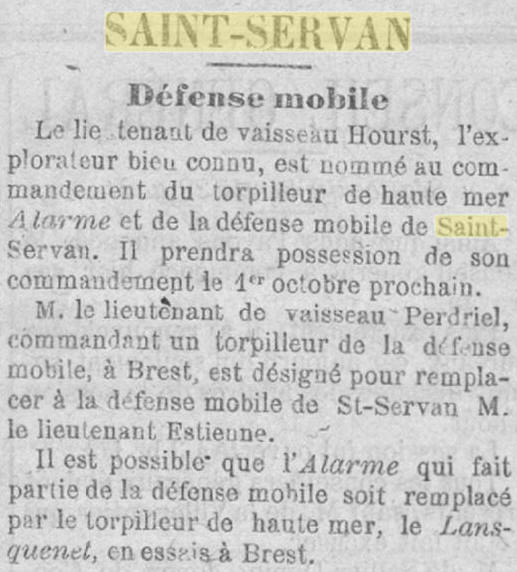 Commandant un torpilleur de la Défense mobile de SAINT-SERVAN-sur