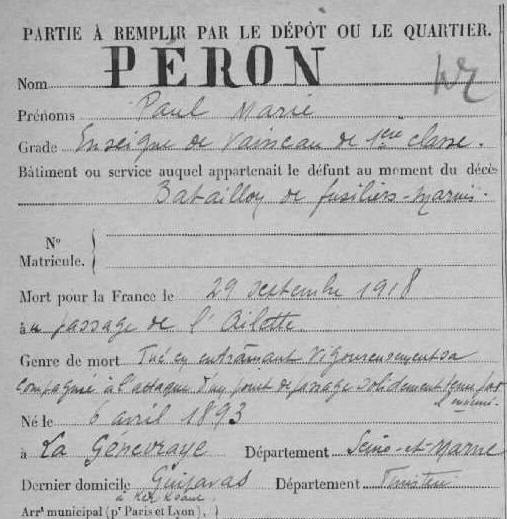 (Seine-et-Marne) - Décédé le 29 septembre 1918, au passage de