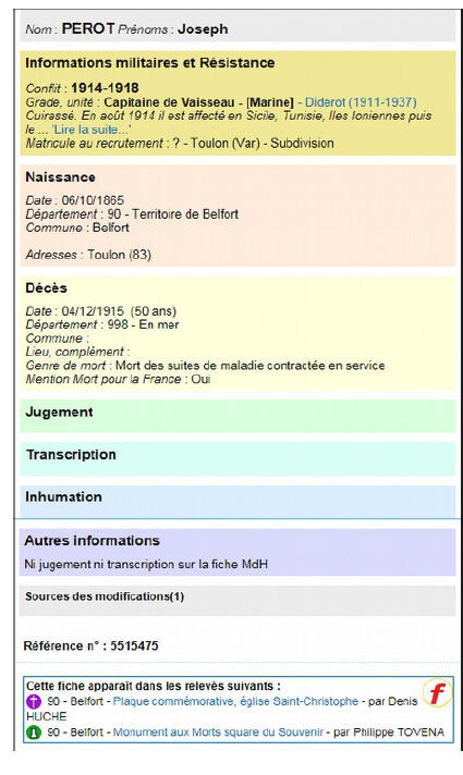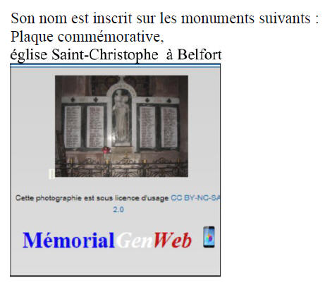 BELFORT (Territoire-de-Belfort) - Décédé le 4 décembre 1915 à