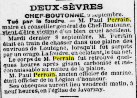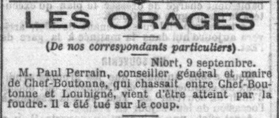 attira la foudre et Paul Perrain fut trouvé mort dans un champ.