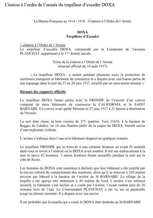 torpilleur auxiliaire "DOXA", il disparaît en mer avec le bâtiment