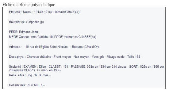 Etudes à l’Ecole Polytechnique, promotion 1933.