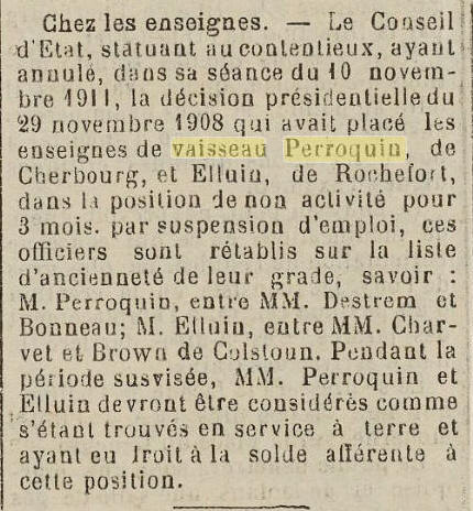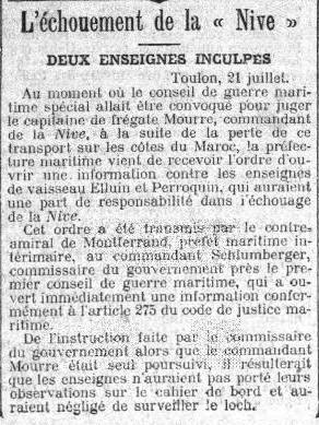 la « Nive » en 1908, Le Conseil d'Etat annule la peine disciplinaire