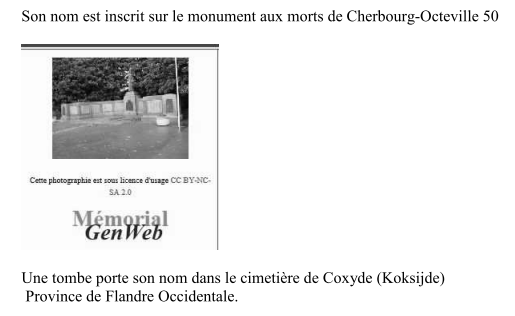 CHERBOURG (Manche) - Décédé le 1er avril 1915 à NIEUPORT (Flandre