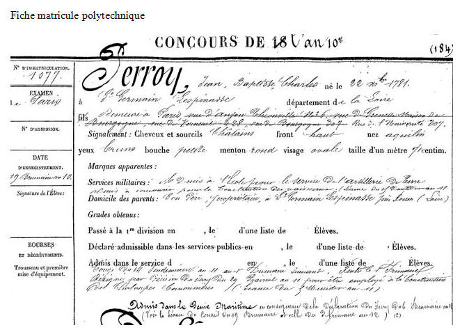 Elève de polytechnique le 1er novembre 1801