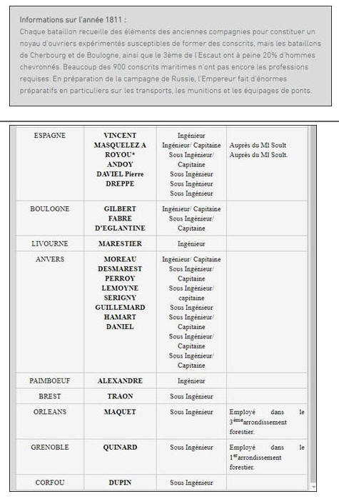 Sous ingénieur de 1ère classe le 21 novembre 1811
