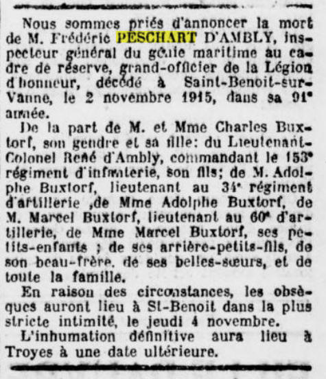 Décédé le 2 novembre 1915 à SAINT BENOIST sur VANNE (Aube)