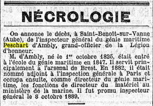 Ingénieur de 1ère classe le 2 septembre 1874; port BREST