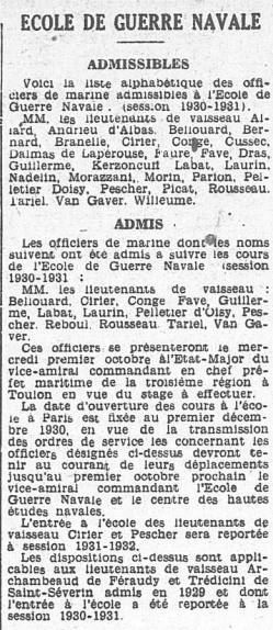 sur l'aviso "ARRAS", École de perfectionnement des Officiers de