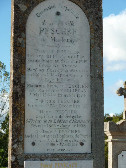 Remerciements informations complémentaires et photos sépulture / Daniel Pescher