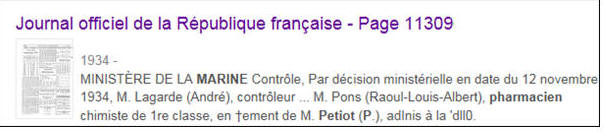 Pharmacien chimiste en chef de 2ème classe le 15 septembre 1934,