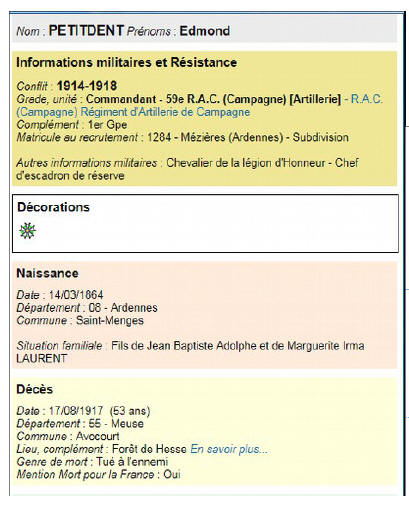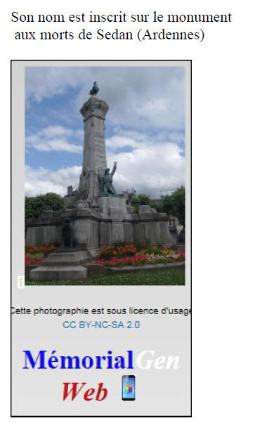 Né le 14 mars 1864 à SAINT-MENGES (Ardennes) - Tué le 17 août 1917 à