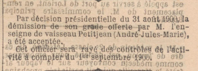 dans le cadre de réserve le 1er septembre 1900; port CHERBOURG.