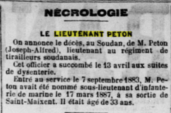 Né le 12 décembre 1862 - Décédé le 13 avril 1896 au SOUDAN